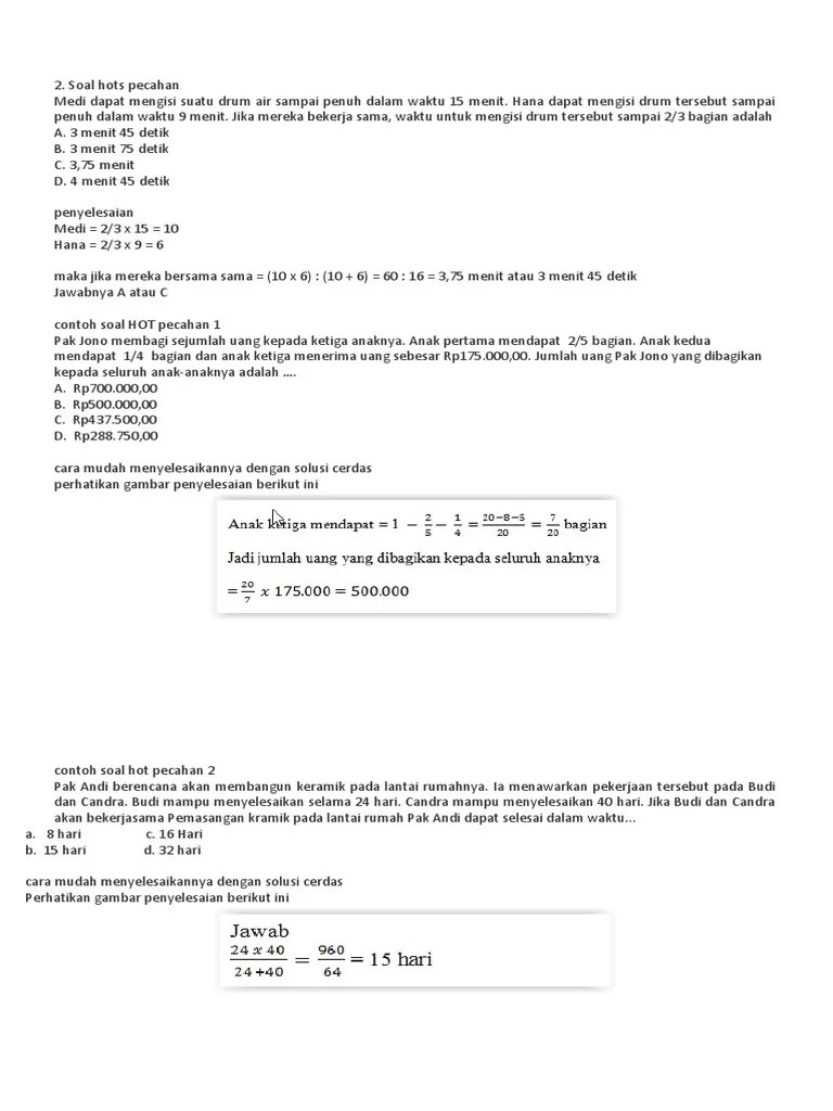 Soal matematika pecahan kelas 5 sd dan kunci jawabannya bisa dipelajari untuk berlatih dalam mengerjakan pr.